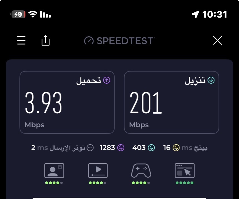 طيب كذا بنقك خرافي 16 ميلي سكند والداونلود ممتاز والابلود ممتاز يعني الاحصائية ذي تعتبر بالنسبالي شي ممتاز وطيب