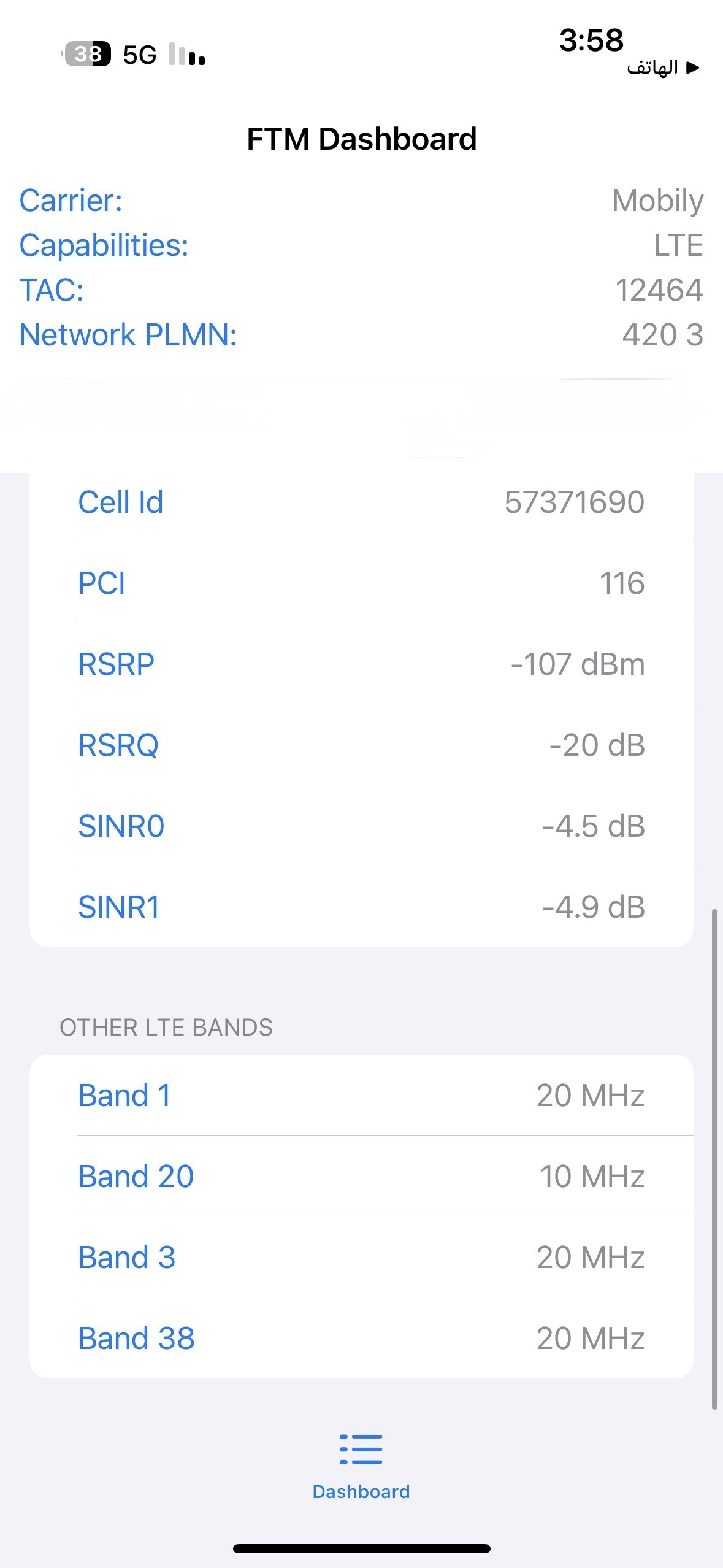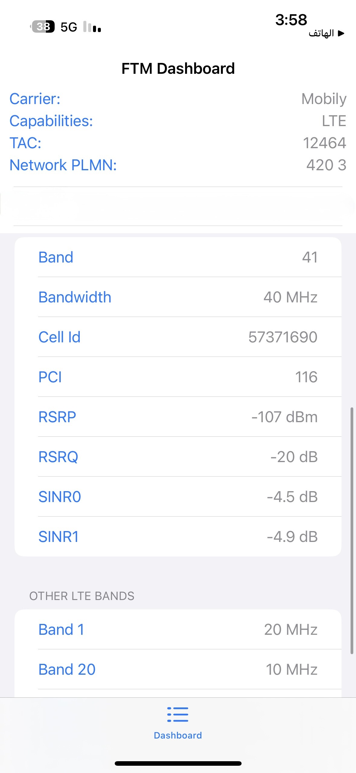 بالنسبة للشريحة اللي استعملها موبايلي إعمال لامحدود ، تغطية المشغل في الحي جيده والابراج قريبه وبوضح لكم المعلومات كامله