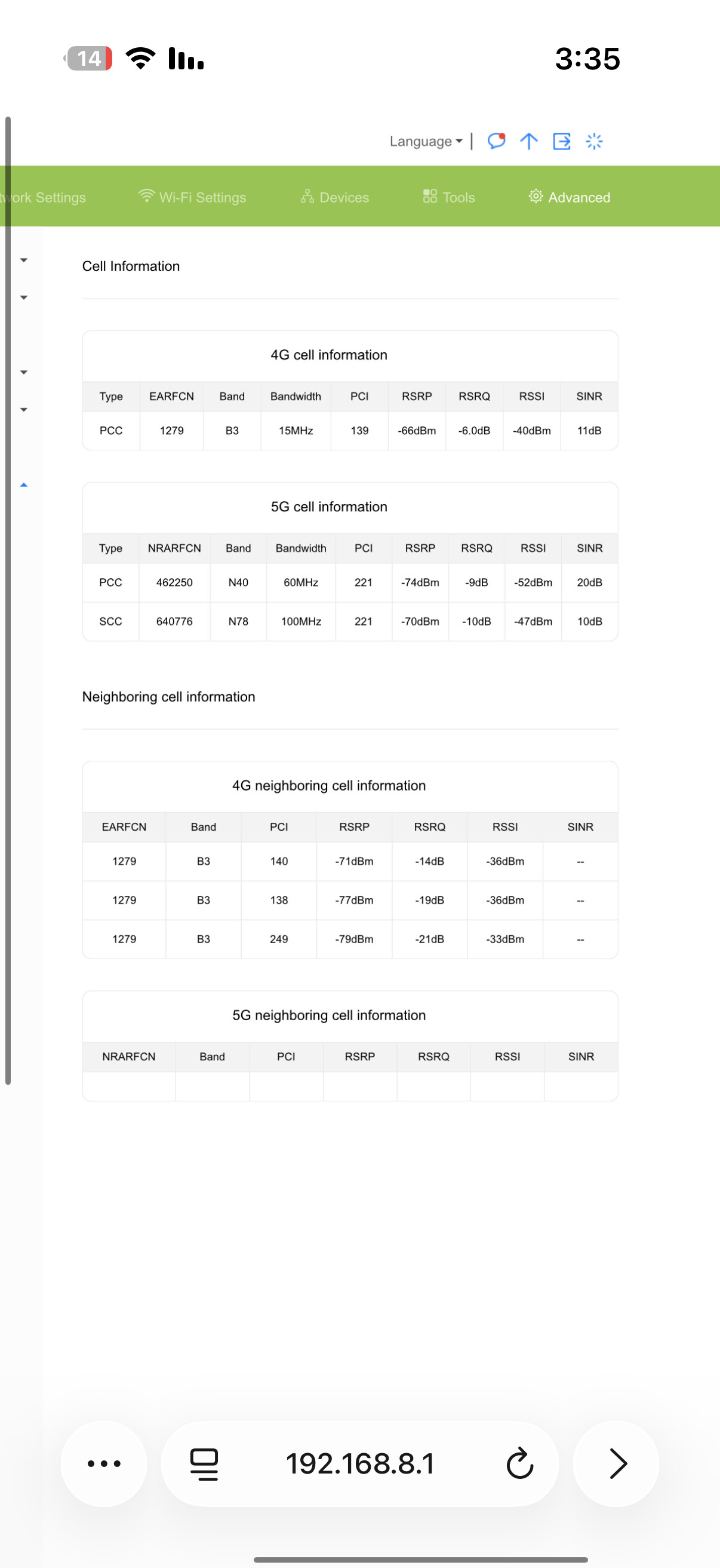 السلام عليكم يا اخوان انا توني ركبت انتينا ميمو و جبت راوتر زين h155-381 الشريحه stc اول ما ركبت الانتينا كان تردد n41 هو المستقر و معطيني بنق ممتاز 40-60 لكن الان اختفى من 3 ايام و بس الي موجود عندي n40 و n78 و كلهم البنق فيهم سيئ و غير مستقر و اضطر استخدم exitlag عشان اشبك على سيرفرات قريبه مني لان الrouting فيه مشكله و يدخلني سيرفرات تعبانه فا وش سبب اختفائه و كيف اقدر احل المشكله؟