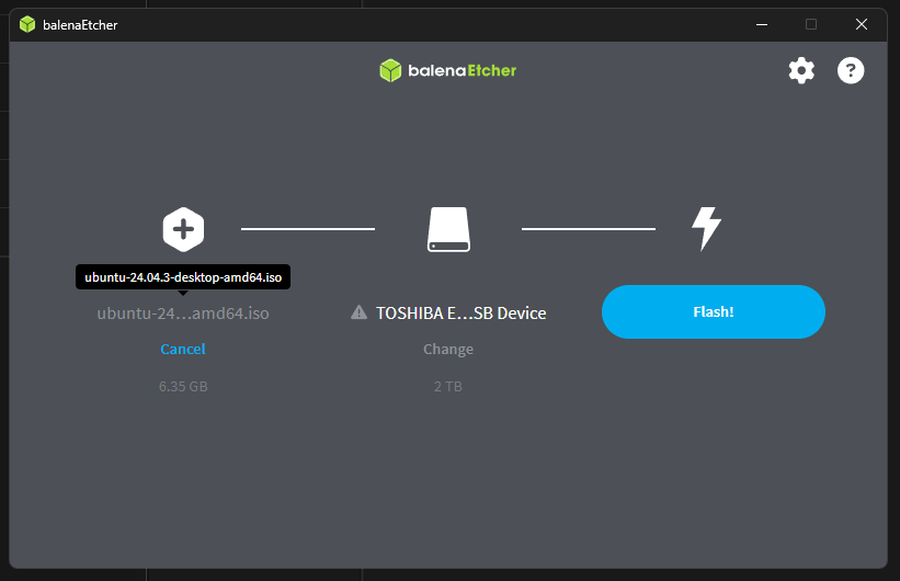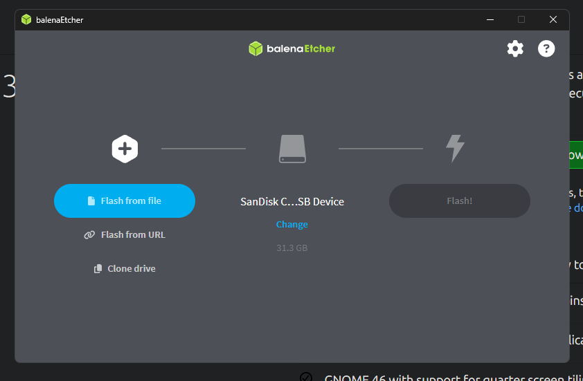 2 - تنزيل برنامج يقوم بحرق النظام على الفلاشه, أشهر مثال على ذلك برنامج مثل “balenaEtcher” كي نستطيع حرق ملف ال ISO على الفلاشه وجعلها قابله للاستخدام كجهاز يُقلع منه الكمبويتر. هذه طريقة مستخدمه بكثره لكن أحد ابرز عيوبها أنها تستحوذ بالكامل على الفلاشه وتجعلها غير قابله للاستخدام كجهاز تخزين, الحل هو الطريقة التاليه (رقم 3).