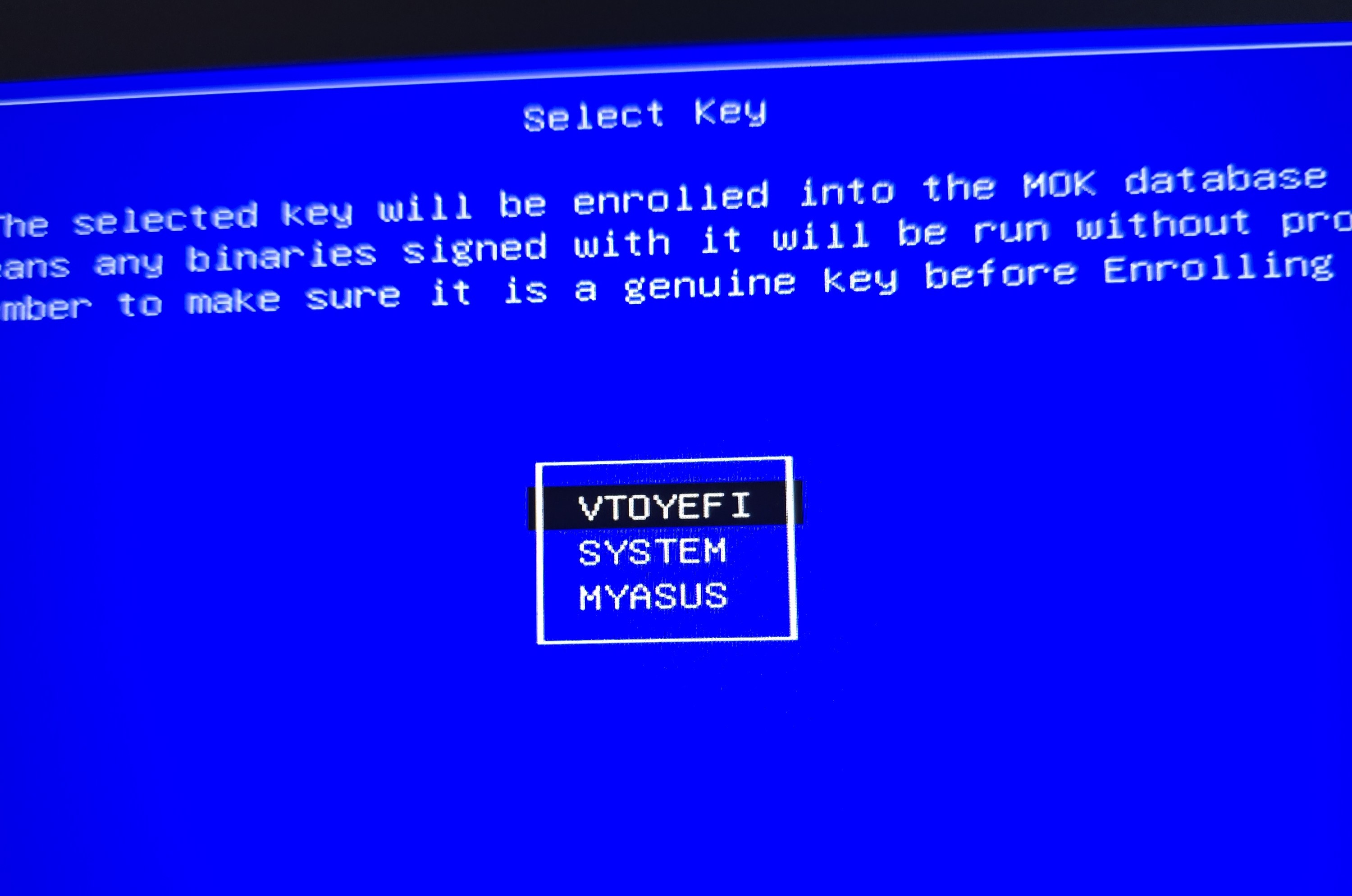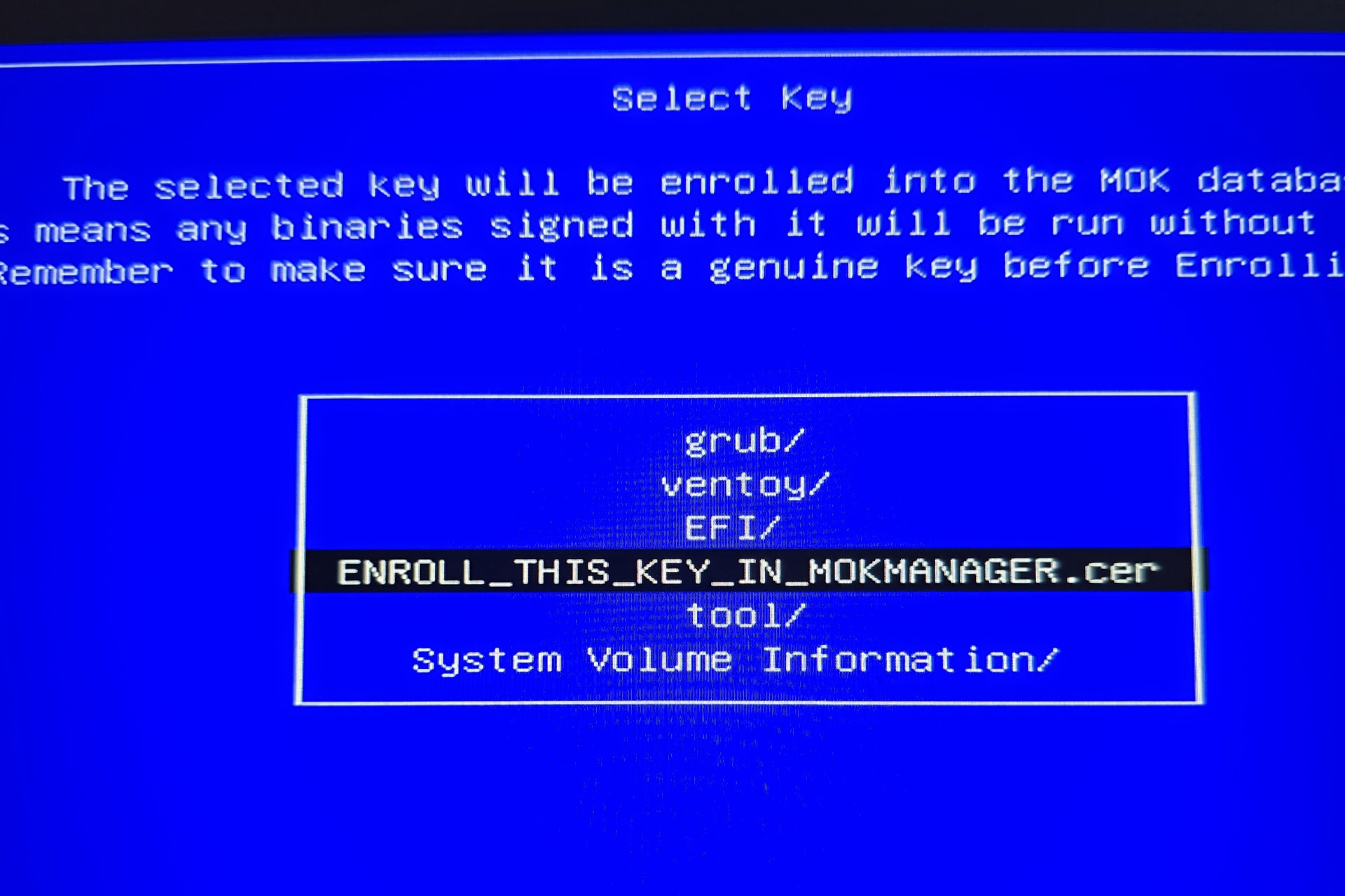 نختار زر “enroll key from disk” كما هو موضح في الاعلى, ثم ستظهر هذه الصورة