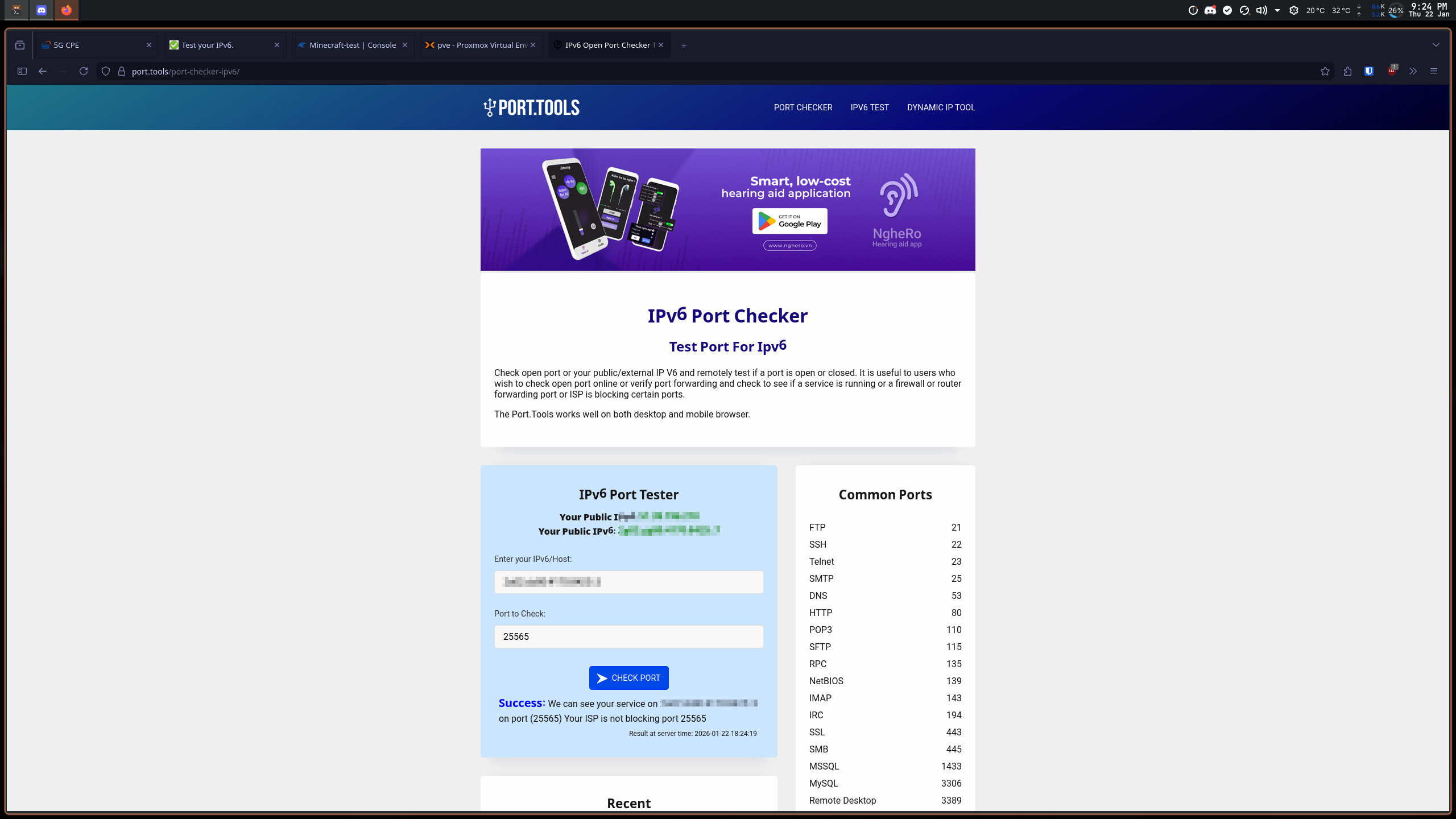 7 - تجربة الخدمة من جهاز خارج الشبكه للتاكيد او استخدام VPN يدعم IPV6 على جهاز اخر ومن ثم التجربه