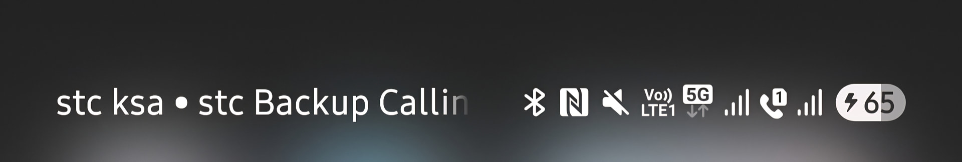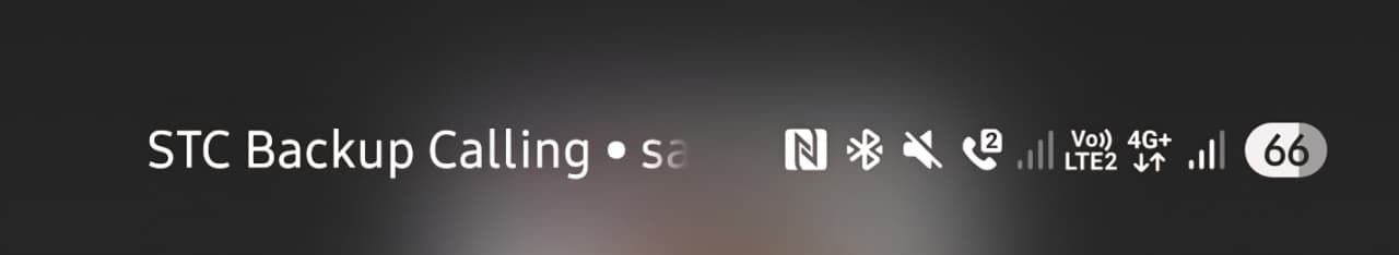 ثانياً: تم التأكد من أن خدمتي (Wifi Calling) و (Backup Calling) مفعلة وتم بعد ثواني ظهور كلمة (STC Backup Calling) ورمز السماعة المشابه لخدمة (Wifi Calling) على شريط الاشعارات صورة2 مما يعني عمل الخدمة بنجاح.