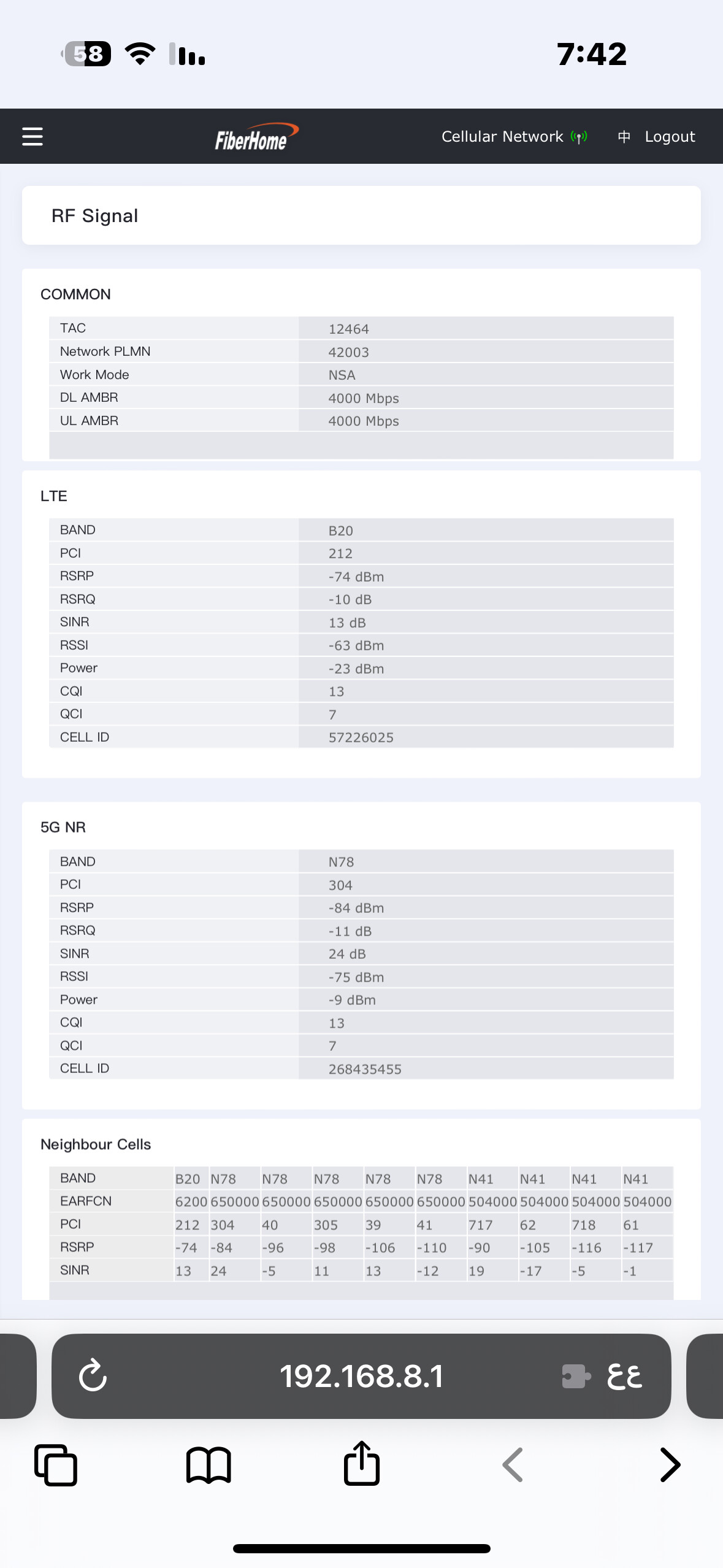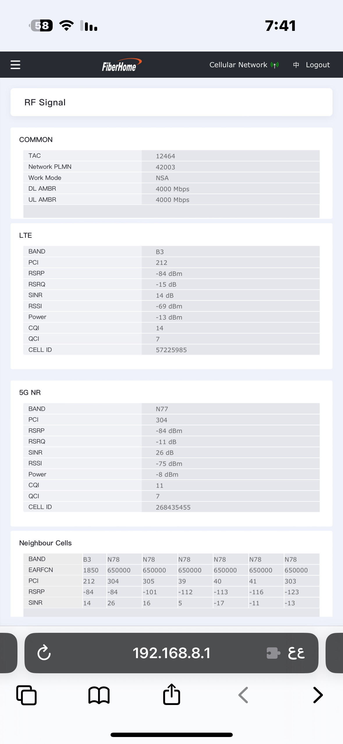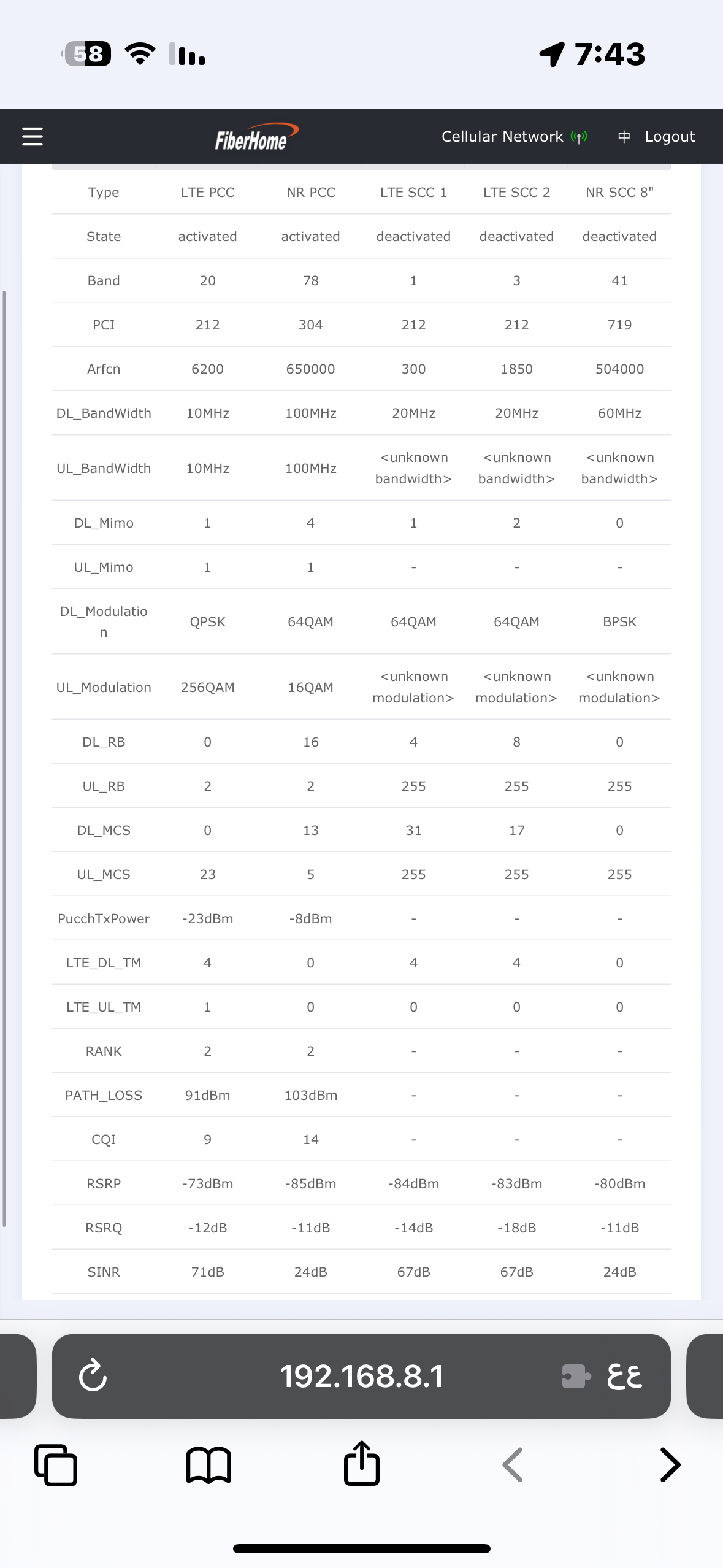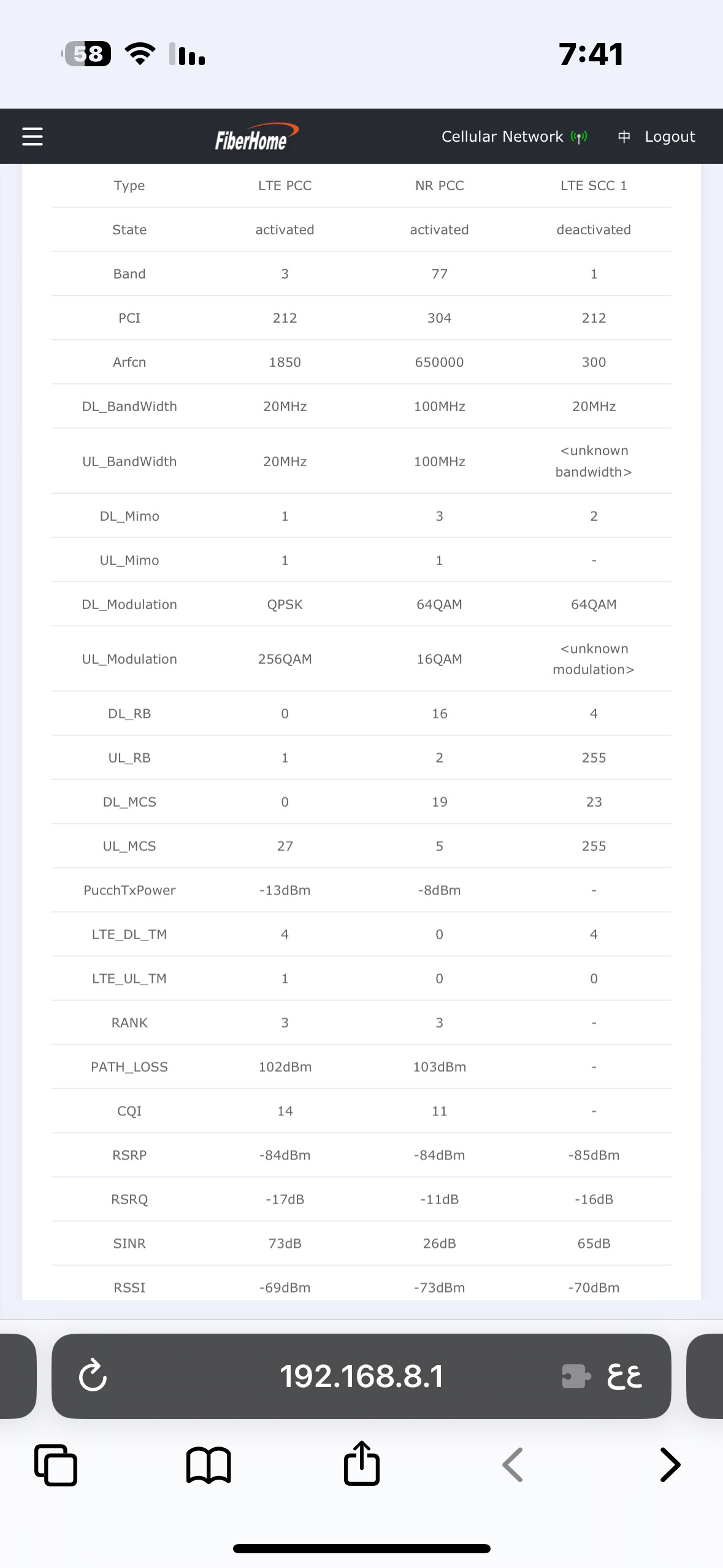 ألاحظ إن ترددات 5G تفصل عندي بكثرة وترجع تتصل، فتحت صفحة RF Signal ومراقبة تردد 5G، وشفت إنه يفصل كثير بعد كم دقيقة، مع إن القراءات عندي جيدة إلى جيدة جدًا، RSRP ما بين 70 إلى 85 وقراءة SINR ما بين 20 إلى 32.