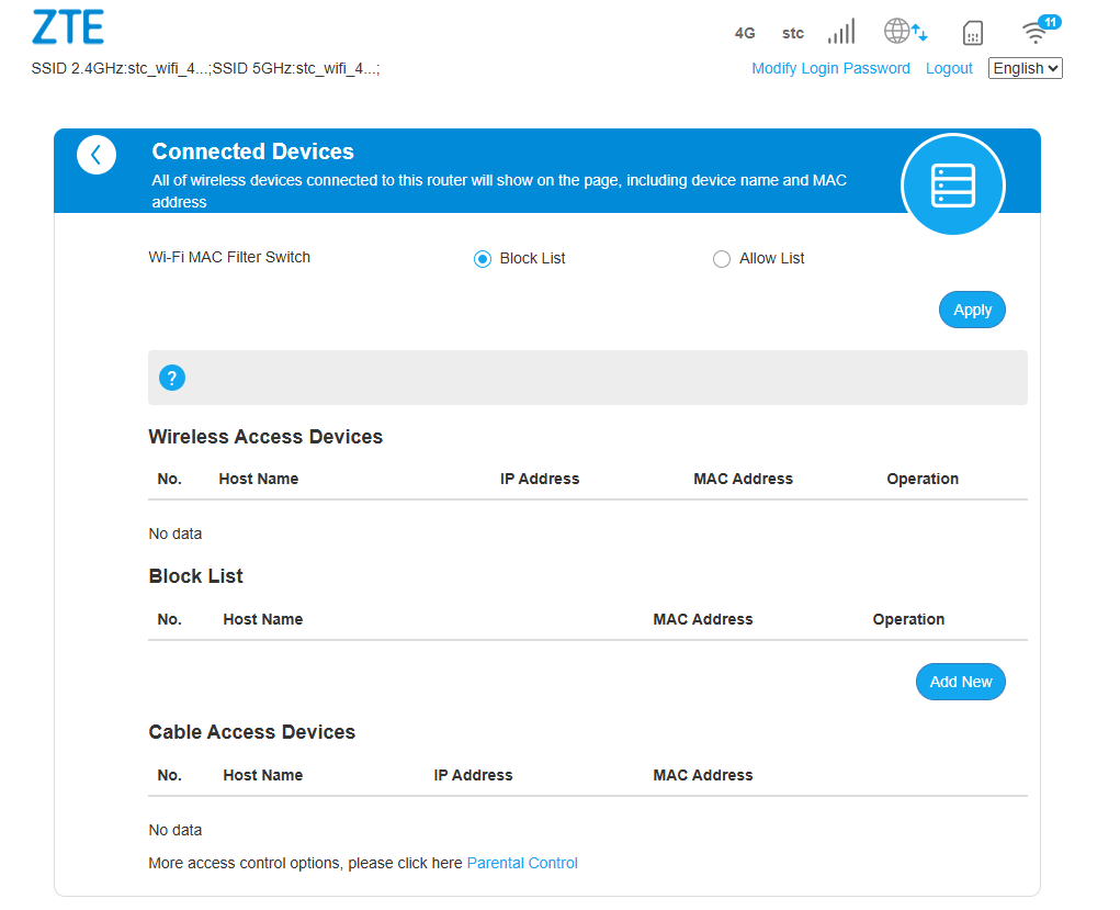 لدي راوتر الاتصالات لم اقم عليه باي تعديل حيث اواجه مشكلة ان الاجهزة المتصلة لا تظهر في القائمة فقط عدد الاجهزة احيان تظهر بعض الاجهزة ثم تختفي