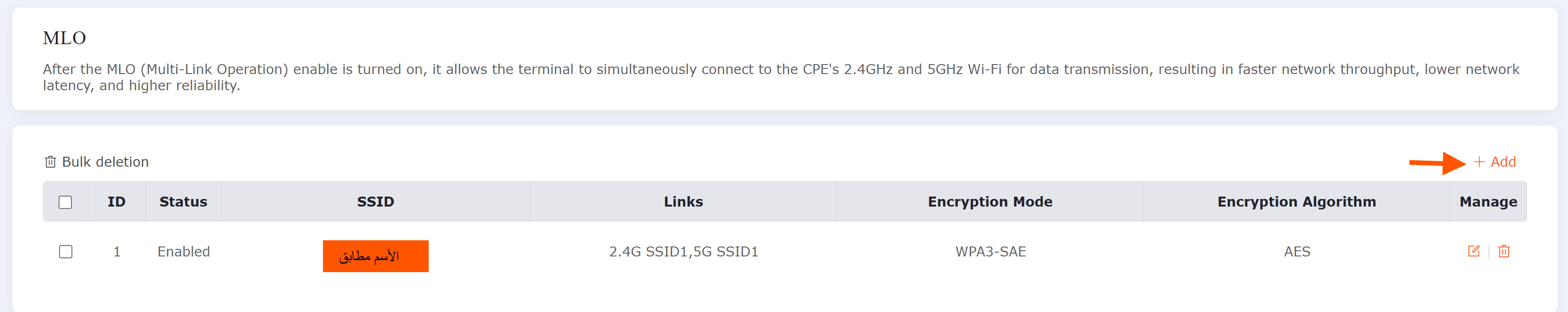 اضغط على علامة الإضافة (+) في قائمة MLO.
