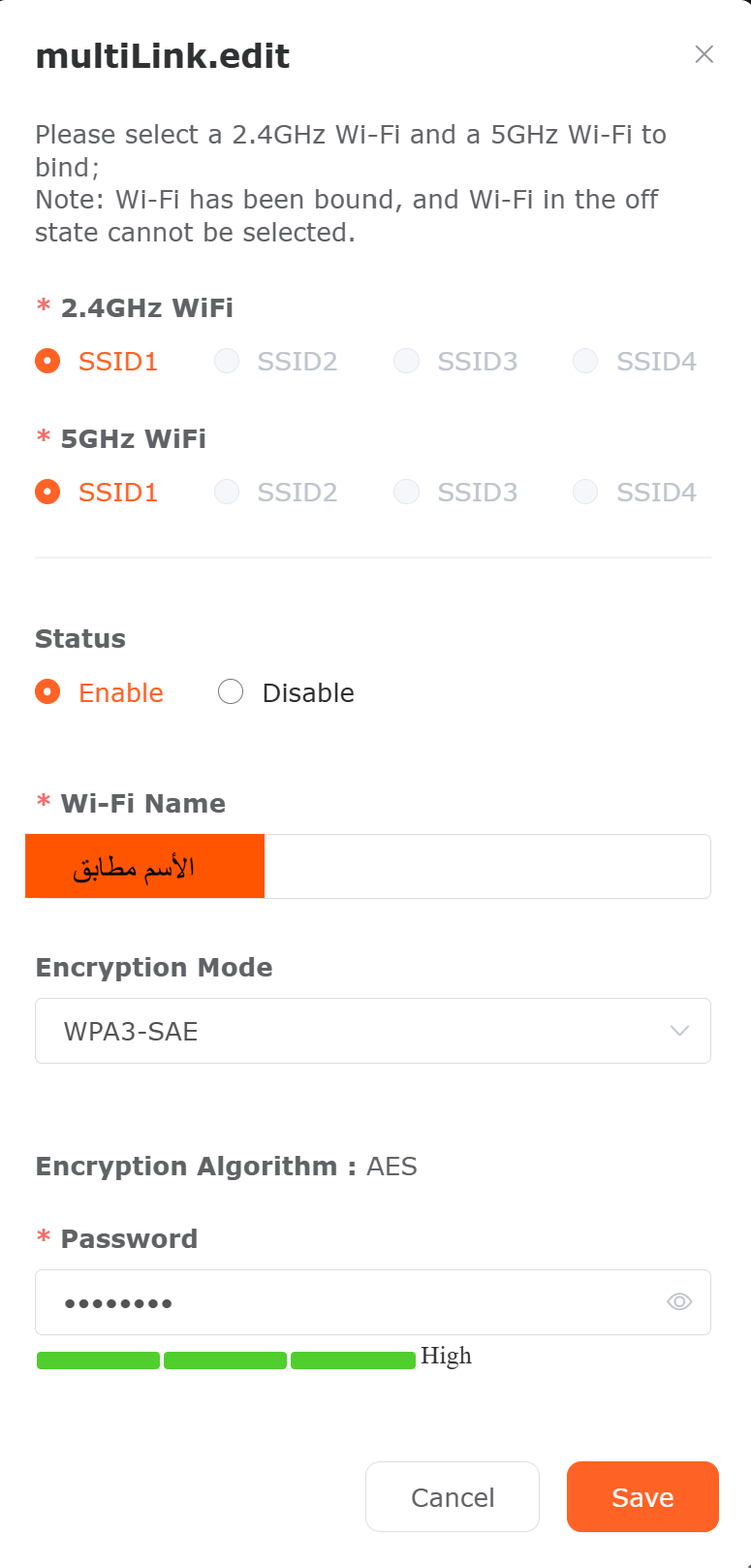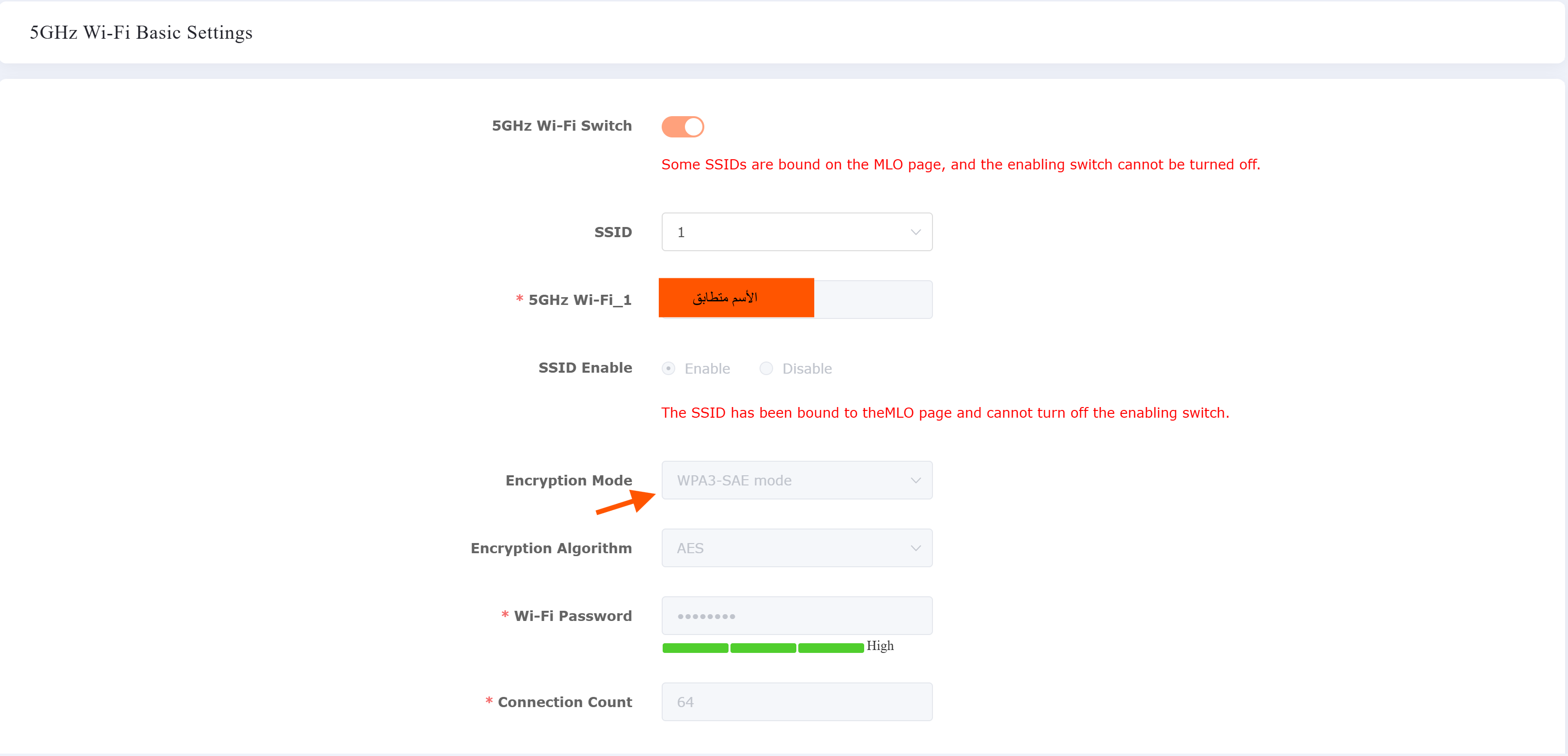 توحيد الشبكة: ضروري جداً تخلي اسم الشبكة (SSID) والرقم السري موحد لتردد الـ 2.4G والـ 5G.