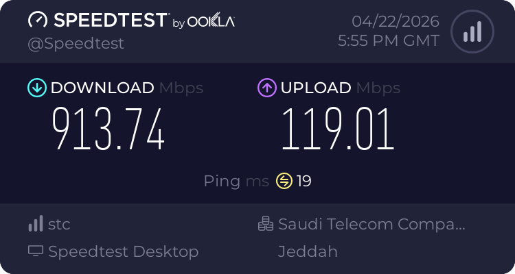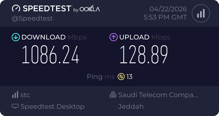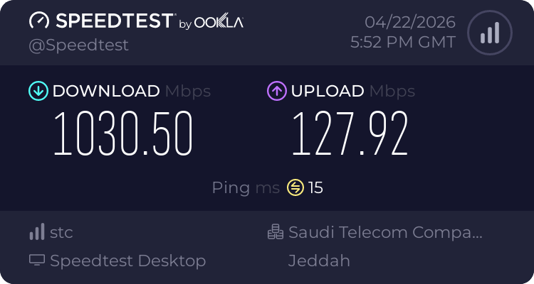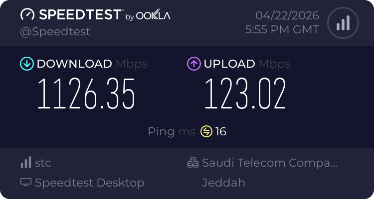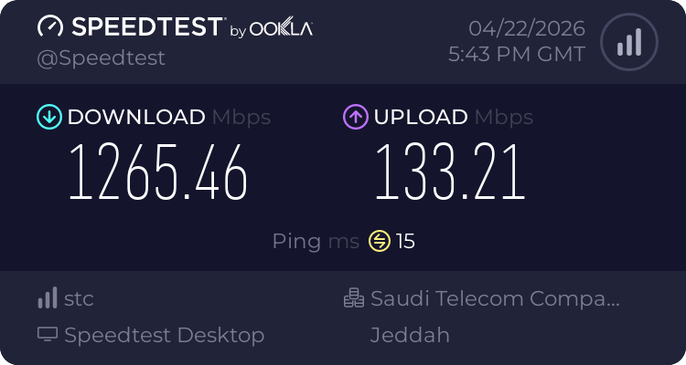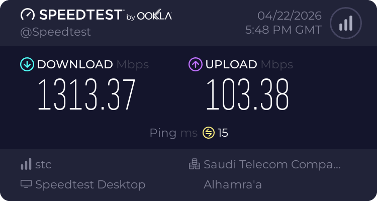 ملاحظة أخيرة لقد قمت بإجراء القياسات في هذا الوقت ويعتبر وقت ذروة حيث أغلب ساكنين الحي عندي يستخدمون الانترنت في هذا الوقت فلذلك خارج اوقات الذروة اتوقع توصل السرعة الى 1500 او اكثر