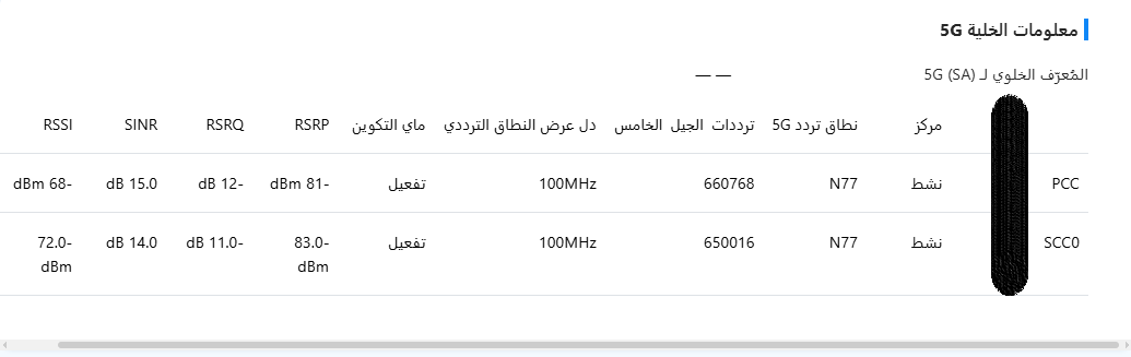 | النطاق الترددي (ميجا هرتز) | Dl حتى 5CC 300MHz وUl حتى 1CC 100MHz |